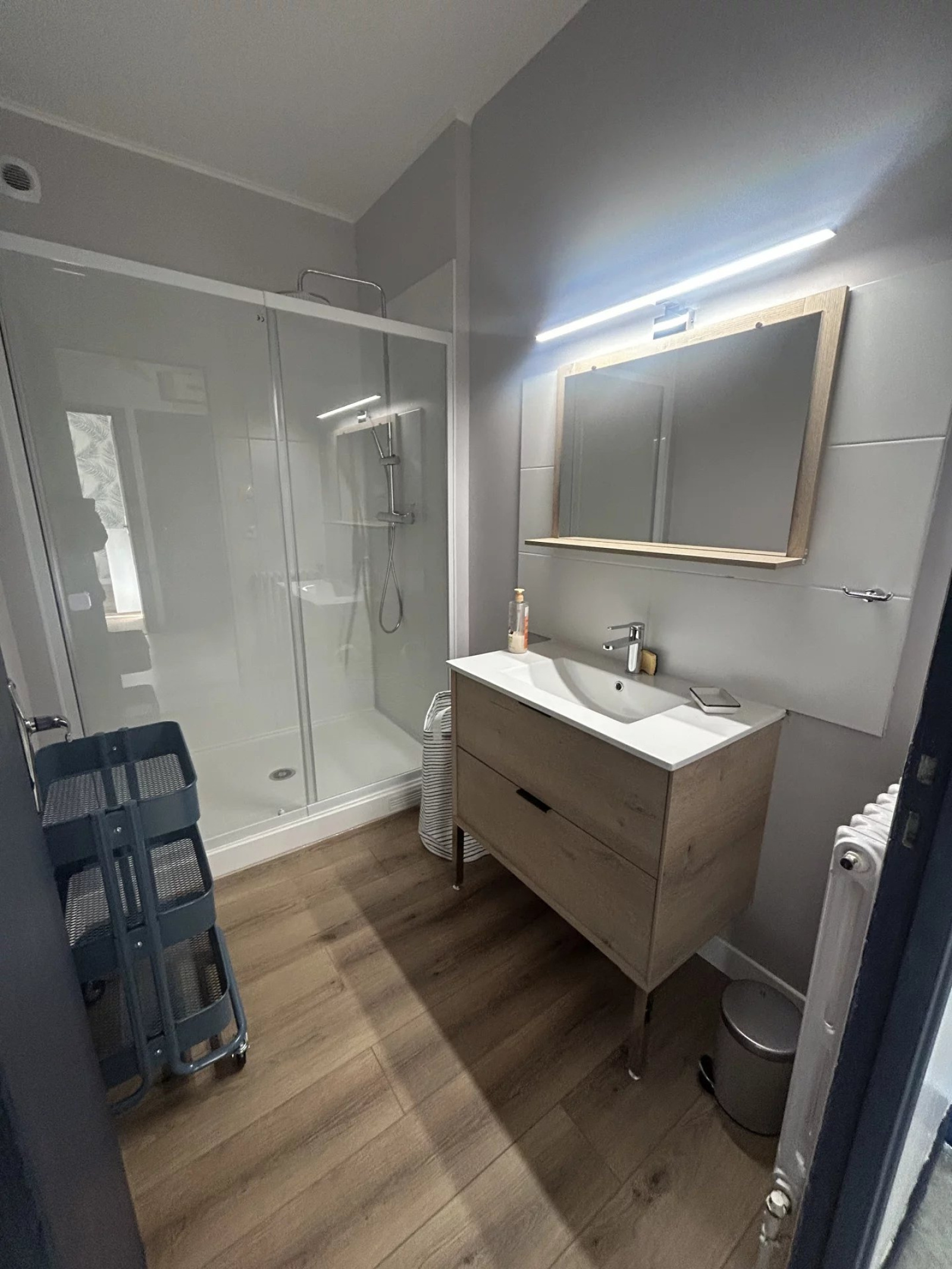 L'appartement a été entièrement rénové avec des matériaux de qualité et décoré avec soin.