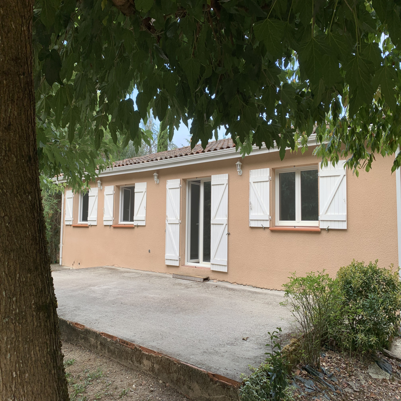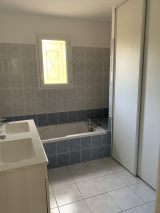 A la sortie d'Albefeuille Lagarde, charmante villa de plain pied comprenant grand séjour, cuisine équipée, 3 chambres, salle de bains avec baignoire, douche et double vasque, cellier, grande terrasse, beau terrain ombragé et paysagé de 2000 m² (pas clôturé) hors lotissement. Libre courant du mois d'Octobre 2025.